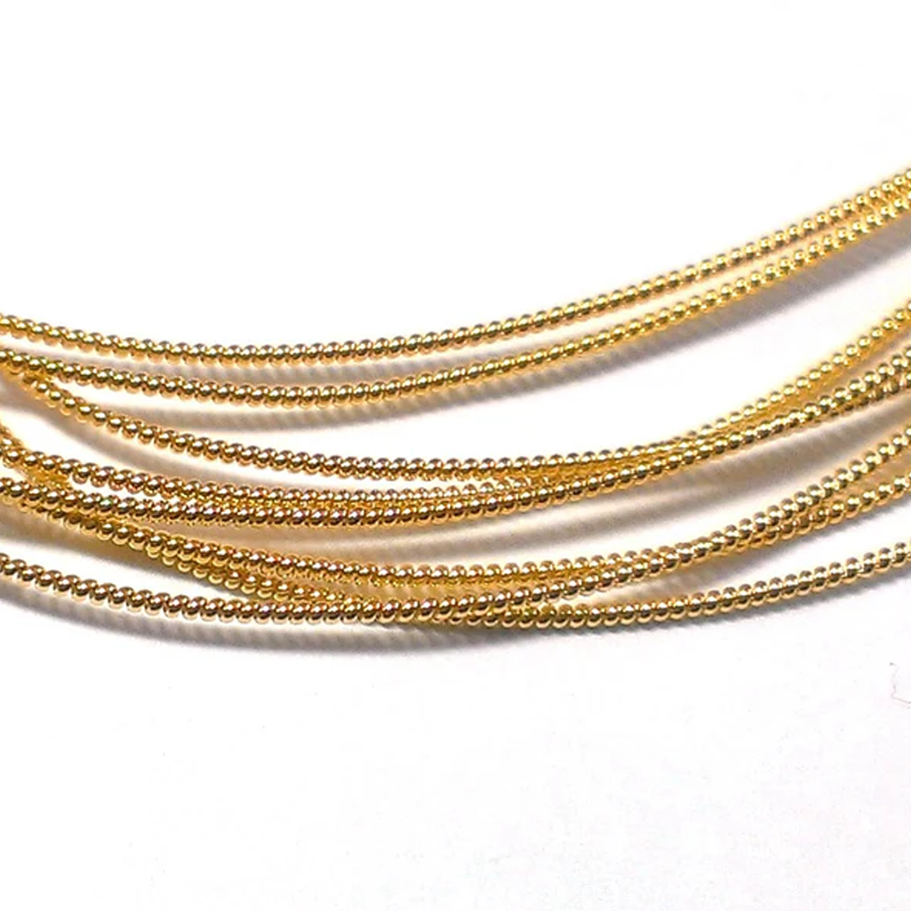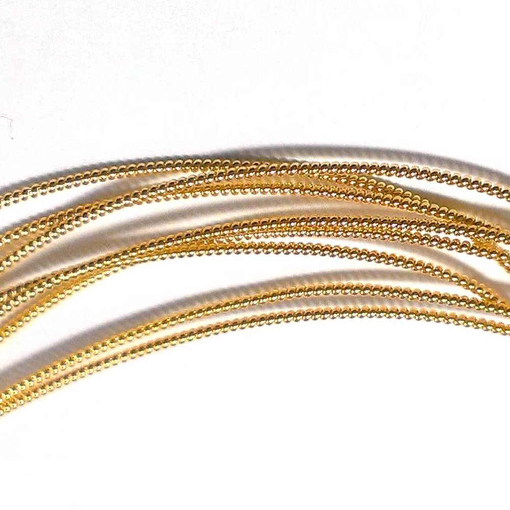 Pearl Purl is a goldwork wire with the appearance of a row of tiny metal pearls.  It is made of a coil of wire so there is a hole through the centre.  It is very strong and easy to manipulate while stitching and adds texture to your embroidery.