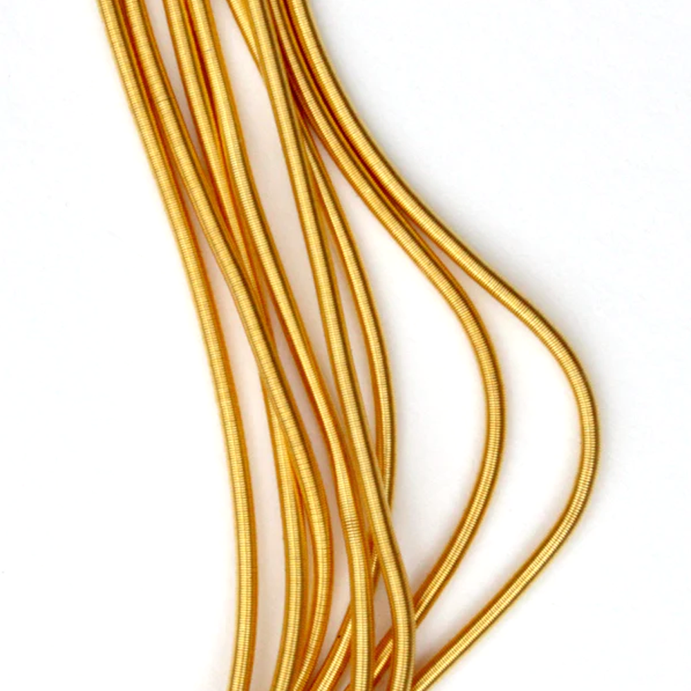 Rough Purl is a goldwork wire which is made of a tight coil of fine wire; there is a hole through the center. It is very similar to smooth purl but a little less shiny. This thread is delicate until it is stitched down. Use Rough Purl by stitching through the hollow center, like you would apply a bead. Use doubled thread with a good coat of beeswax.