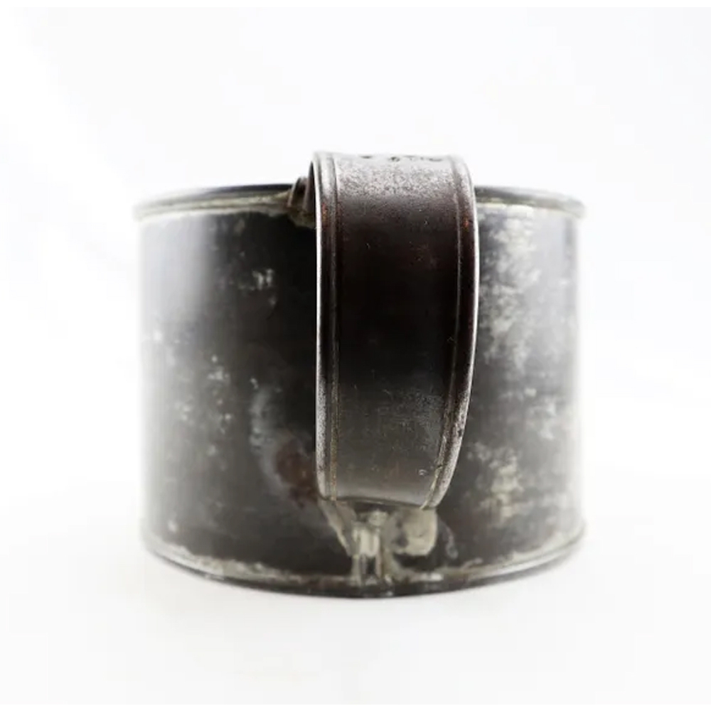 This Civil War regulation cup is the oversized variety, measuring 4 ¼” x 6 ¼ 4”. The handle bears a unit designation “U.S. / 14th”. The cup was purchased from the Horse Soldier and is accompanied by their research on the 14th and the sutlers of the regiment. Tiny period repair on the bottom of the cup.