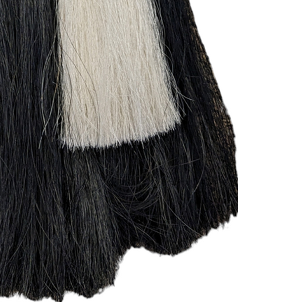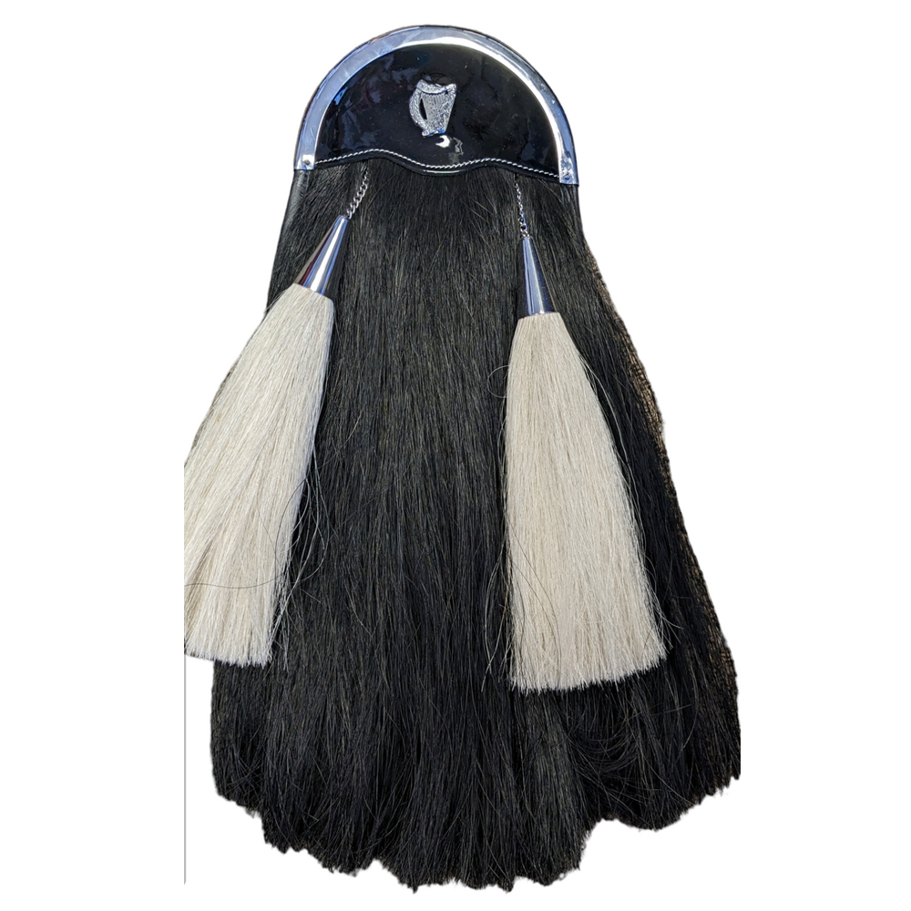 The Horse Hair Sporran is a major part of the kilt outfit that has been around for over 100 years. It is a "staple" in the military pipe band scene. These military sporrans have a black patent leather cantle with a thistle badge and plain cones. They come without a pouch on the back.